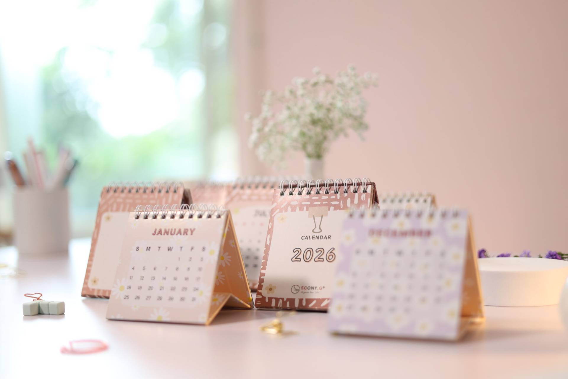 SCONY.G | MINIMALIST DESKTOP PLANNER CALENDAR 2026 | 24 * 18 CM | WRITABLE PAGES